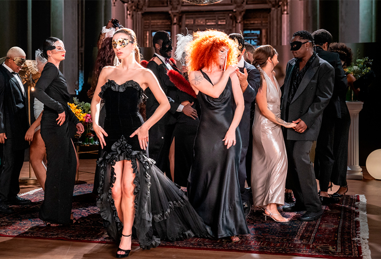 No visual, o clima fica ainda mais intenso. Com direção criativa de Olivia Mucida, Lennyn Salinas e da própria GIULIA, o clipe leva a atmosfera da música pra tela. Inspirado no filme de drama erótico “De Olhos Bem Fechados” (1999), de Stanley Kubrick, o vídeo se passa em um baile de máscaras. GIULIA aparece em um salão imponente, cercada de figuras misteriosas que giram em torno dela num jogo silencioso de sedução e curiosidade. O mistério guia tudo: rostos escondidos, olhares que se cruzam, e a sensação de que, quando as máscaras caem, é ali que o show começa de verdade.